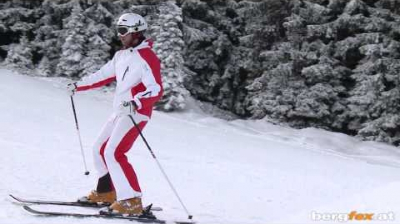Das Video zeigt auch Übungen, mit denen man den Pflugbogen trainieren kann. Man bekommt ein besseres Gefühl für die Gewichtsverlagerung, wenn man die Bögen ohne Skistöcke fährt.